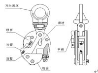 1.1 豎吊鋼板起重鉗(以下簡稱豎鉗),采用低合金高強(qiáng)度結(jié)構(gòu)鋼制造并熱處理而成。豎鉗具有萬向吊環(huán),使用范圍廣、安全和靈活等特點(diǎn)。